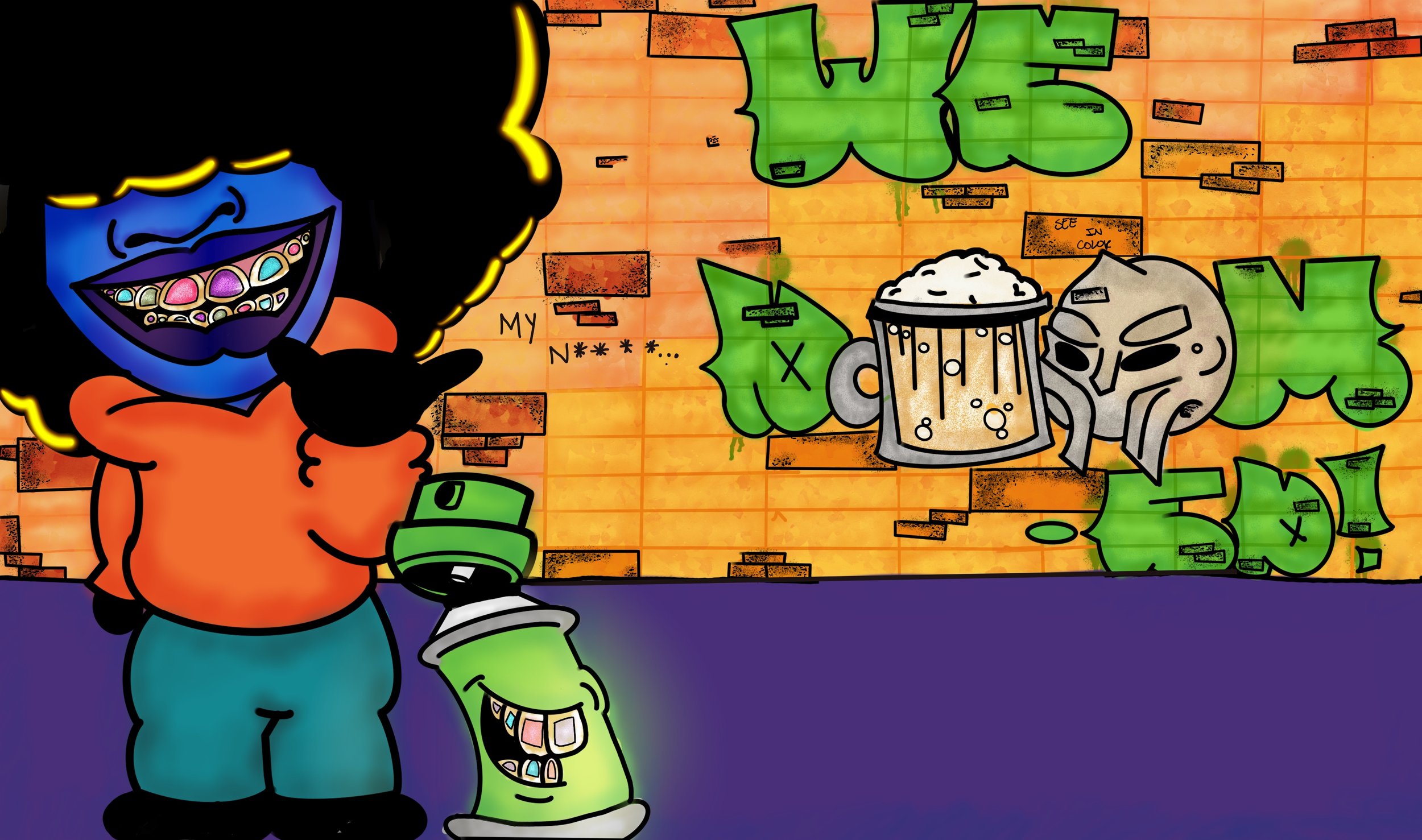 Noah and his spray paint can as his sidekick. Together, they move through the city, transforming blank walls into vibrant reflections of identity and memory—each piece paying tribute to those who inspire, including the late hip-hop artist MF DOOM.